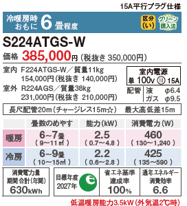 ダイキン GXシリーズ|S224ATGS-W|東京|神奈川|埼玉|千葉|宮城|静岡|愛知