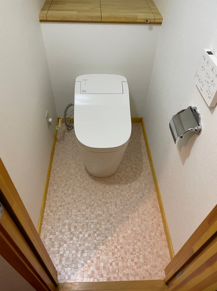 トイレの便座の交換はもちろん、それに伴うクロスやクッションフロアの張り替えもワンストップで施工が可能です。